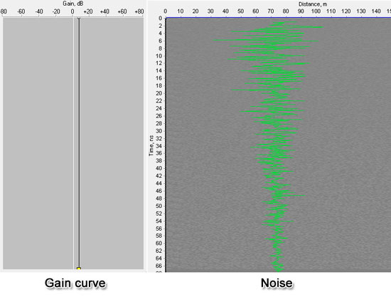 In VIY GPRs using the Telbin technology and applying an even gain, the noise decreases with sounding depth increasing.